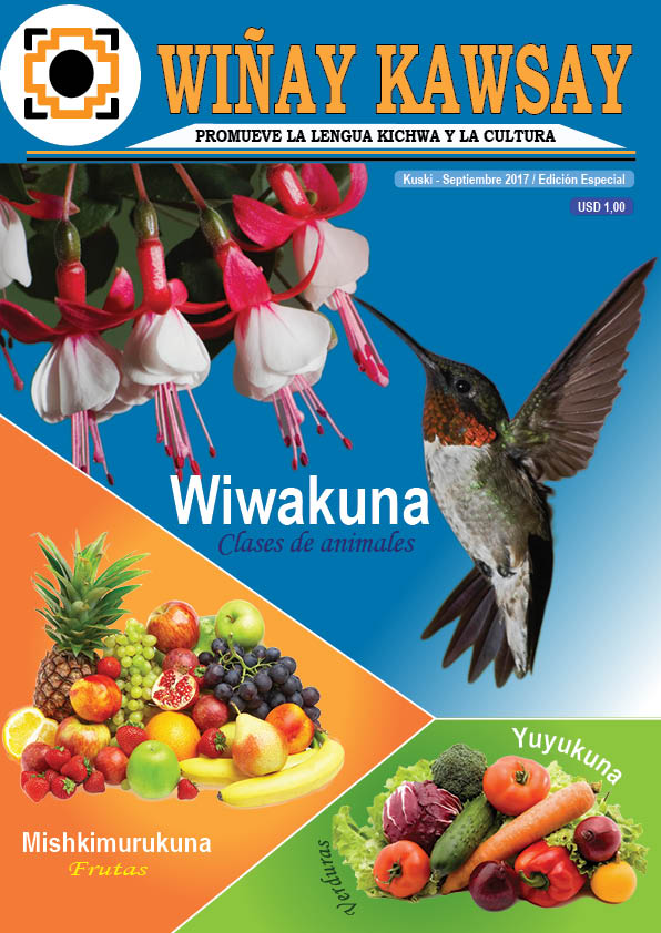 En esta ediciΓ³n especial, la revista WiΓ±ay Kawsay tiene el agrado de entregar a ustedes una lista amplia de nombres kichwas de animales, frutas, granos andinos y plantas medicinales. Estamos convencidos, una de las formas de aportar a la revitalizaciΓ³n de la lengua kichwa es promover la reconstrucciΓ³n del vocabulario kichwa y difundir a las comunidades y lectores para su uso y aplicaciΓ³n.